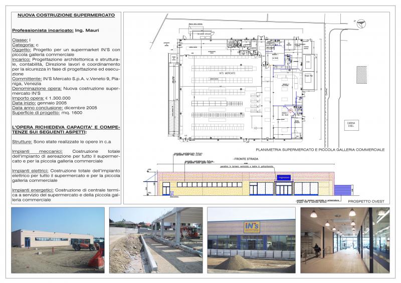 Progettazione, direzione lavori, coordinamento sicurezza e project management per realizzazione nuovi punti vendita catena In'S Mercato.